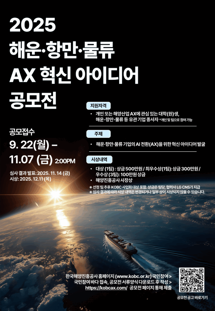 - 공모명: 2025 해운·항만·물류 AX 혁신 아이디어 공모전